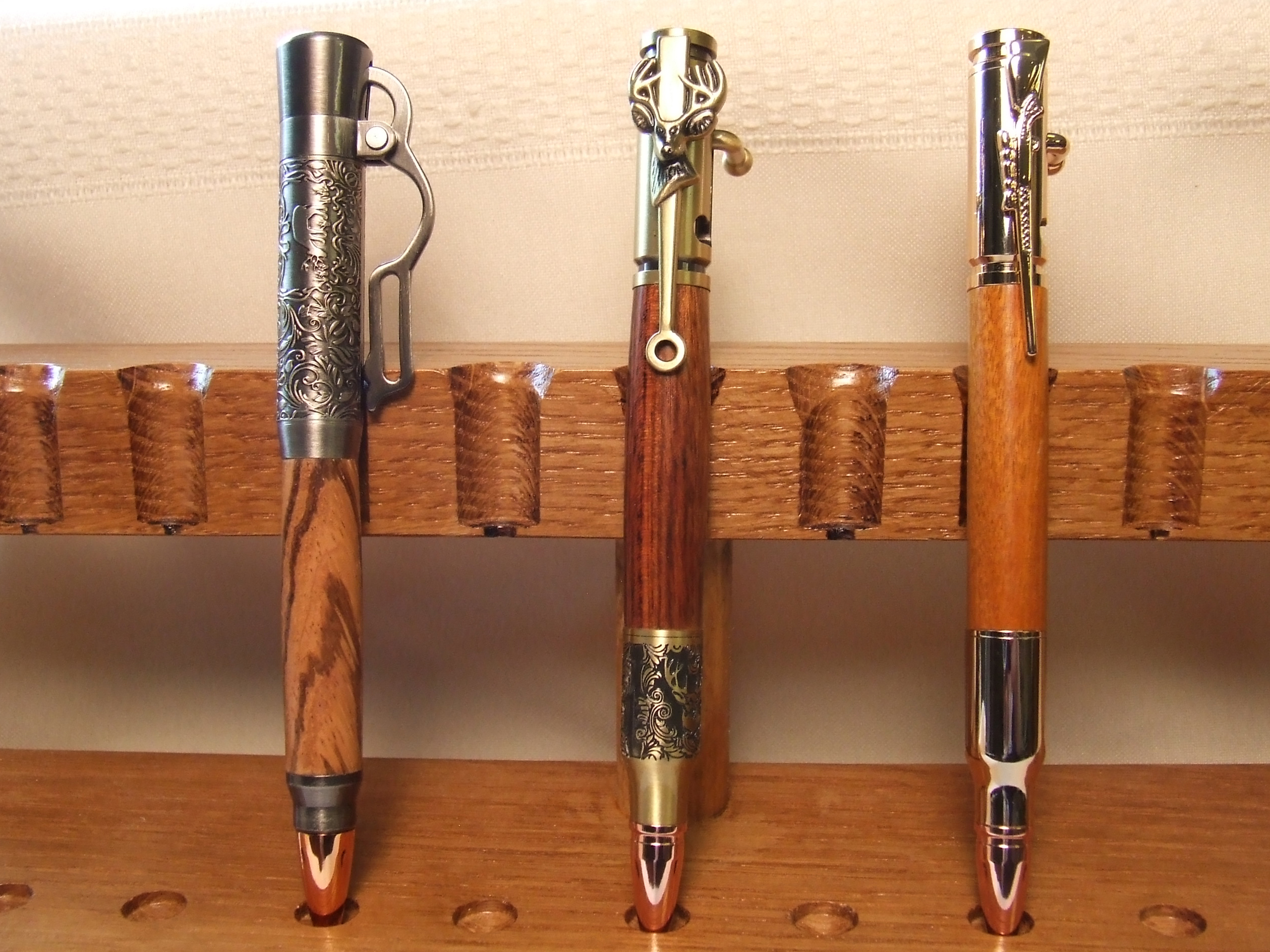 I was first introduced to making pens by a friend, and I completely fell in love with it. It has become a great passion for me to turn the wood and assemble the pen. The wood that I use for each of the pens comes from all around the world. Each pen is made with superior workmanship. I am happy to help you customize your pen; from the style, wood or acrylic, down to the metal. Call us today at 801-598-6754 or send us an email and let's create a work of art for you.